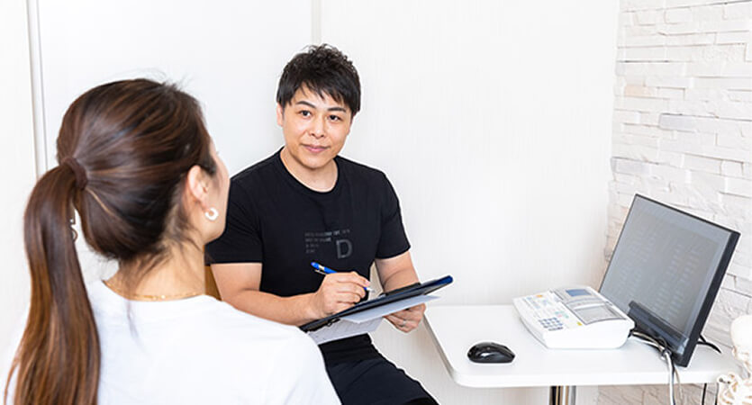 体力不足と現在の筋肉バランスを相談したく伺いました! 浮腫んだ身体やパンパンの足など最初は見てもらうのが恥ずかしいと思いましたが流石プロ、悩みをしっかり聞いて下さり食事や日頃の姿勢などのアドバイスもいただき痛いほど酷かった浮腫みも随分無くなりました。 先生達も皆さん優しくて老若男女問わずとても伺いやすいです。 今でもお世話になってます!